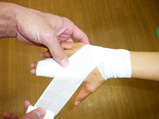 捻挫や突き指をした時の軟部組織への圧迫、固定による回復促進が主な目的です。